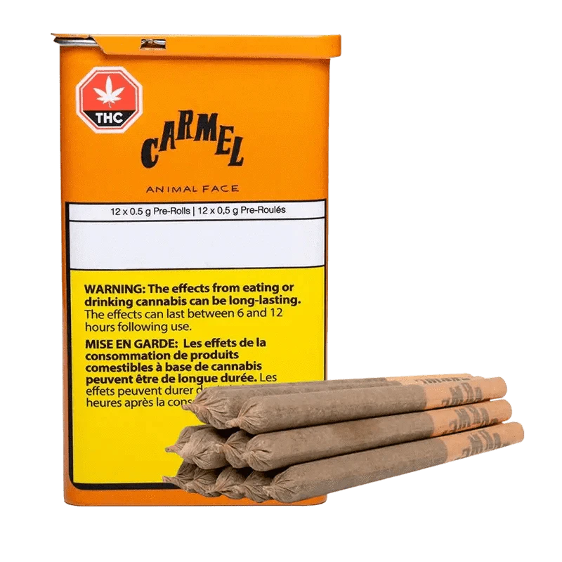 Animal Face is an ultra potent, flavour sativa that packs a punch. Our version of Animal Face was selected out of 100 different phenos, not only for its high potency and terpene profile, but also because we love the unique flavours of lemon and Cake. Carmel pre-rolls are made with whole flower, never trim. Each pre-roll is hand filled, hand twisted and packaged in our premium glass tube.