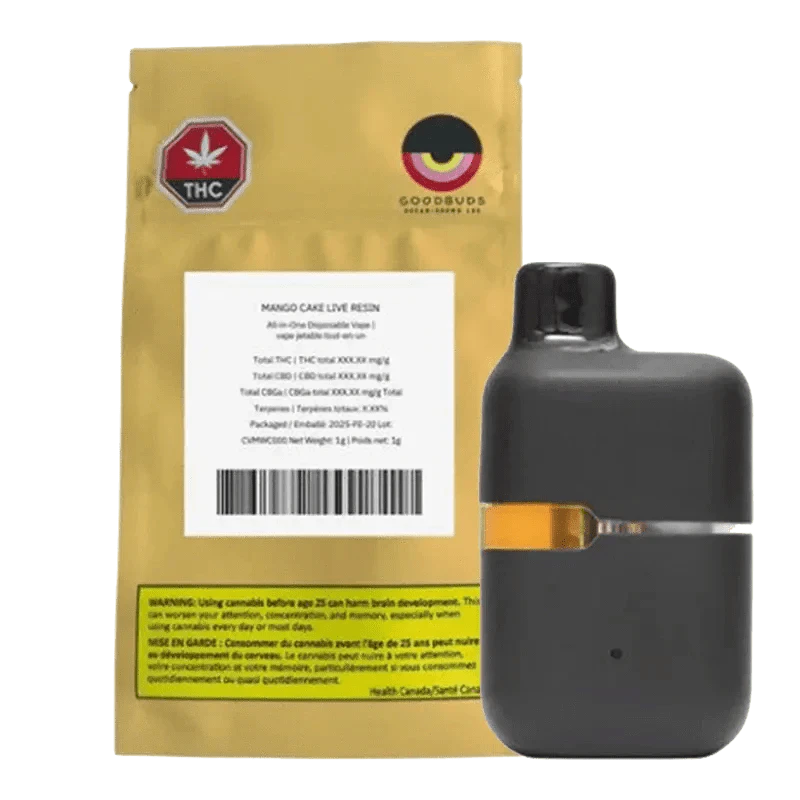 Bred in-house, our Mango Cake is an exotic dessert cross of GOOD BUDS' juicy Mango Taffie strain with sweet and creamy Wedding Cake. It leads with classic Mango Taffie smells of ripe mango sweetness with a gassy afterburn, followed by sweet vanilla frosting undertones and a creamy cake dough mouthfeel on the exhale. It's crafted in small batches from our organically grown flower and extracted by Common Roots Extracts on Vancouver Island, BC.