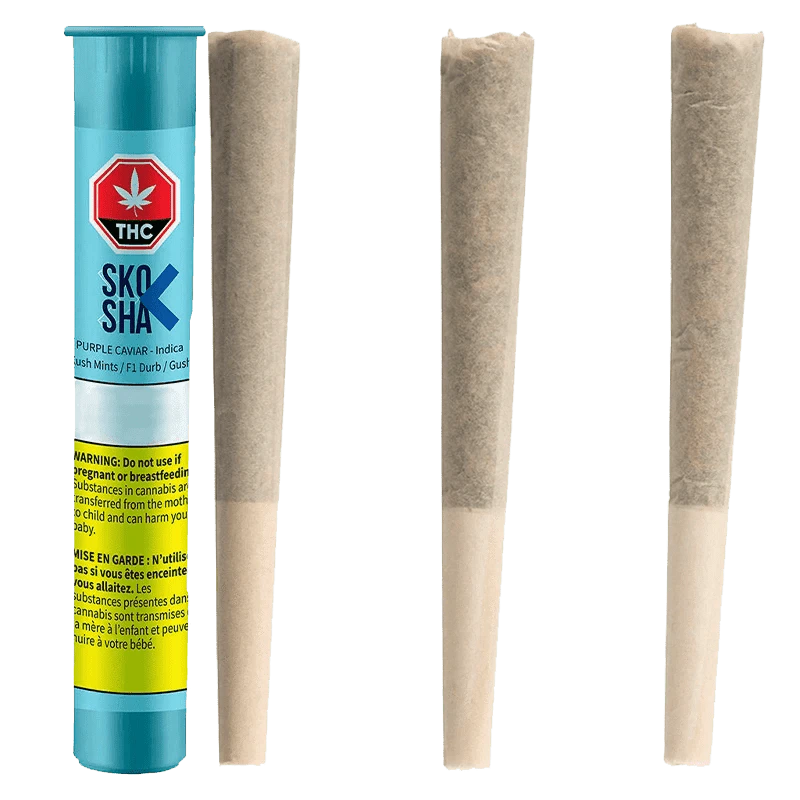 Purple Caviar is another SKOSHA delicacy! Expect a sweet and cheesy-gas aroma from this high hitting smooth Pre-Rolls.