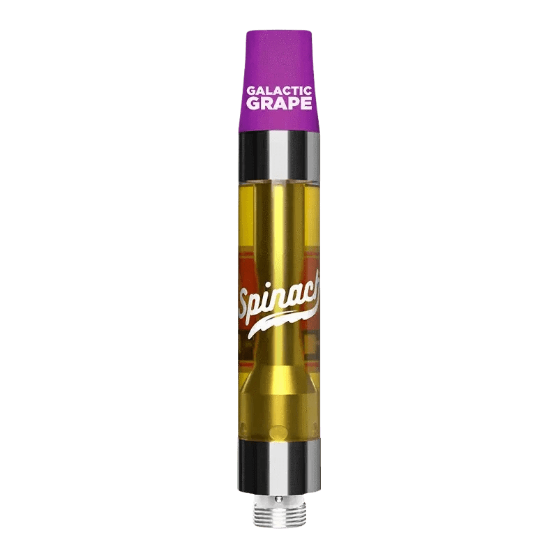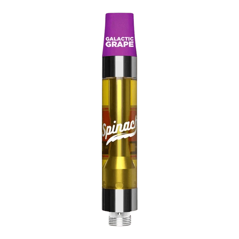 An interstellar journey of flavour begins with earthly elements from right off the vine. The Spinach Galactic Grape 1.2g vape is gushing with sweet flavours that go to the ends of the universe and back with just one puff. Inspired by the Galactic Grape strain with Grape Diamonds and Stardawg lineage, it's no surprise that this potent vape at 1000mg of THC per cart breaks barriers of flavours and aromas beyond the stratosphere.