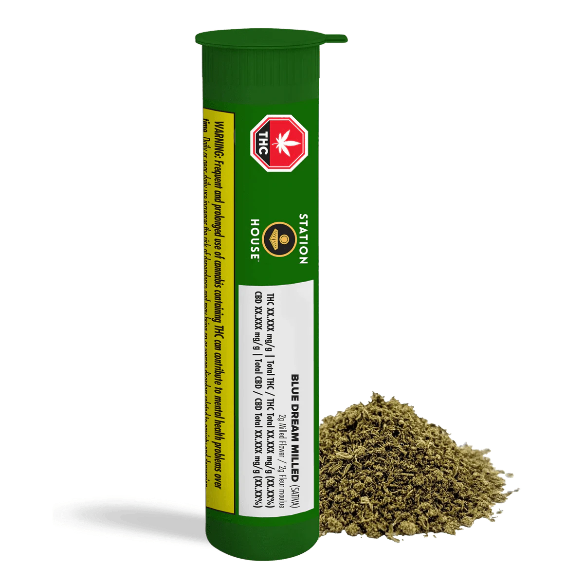 Get to your destination quicker with Station House Shortcuts! No rolling, no prep, just pack and light. Enjoy Blue Dream single strain quality milled flower for your convenience. This classic sativa is known for its earthy, herbal notes with sweet blueberry undertones.